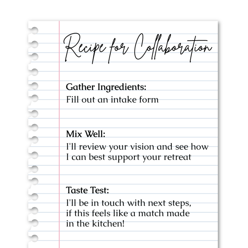 If you are planning a retreat, I would love to take the stress of meals off your plate so you can fully focus on the experience you are creating. Together, we will design a menu that reflects your vision and makes your guests feel cherished.